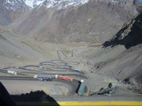 The drive takes about three hours on either side of the border. This doesn’t include the time spent in customs (in our case 3.5 hours). It was a bit intimidating going through customs with a language we don’t understand, but our phrasebook and some bilingual passengers helped us make sense of the process. The road on the Chilean side has an impressive series of hairpin bends set into the steep mountainside. We were sitting on the top story of the double decker bus and were very aware of how close we were to the huge trucks passing by!