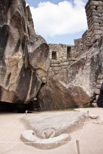 There were several temples – the most interesting for us was the Temple of the Condor. The Incans believed that when a person died that a condor took their spirit up to the “upper world” while their body went to the underworld. The temple was shaped as a condor, looking down the mountainside to the east (to take the spirits into the rising sun). There were several alcoves on the condor’s “back” where the mummified bodies were placed for a day or so, to allow the spirits to depart. Incans were a strongly class-based society – there were special alcoves under the condor’s wing for the upper classes, as this was believed to be the warmest, most protected place.